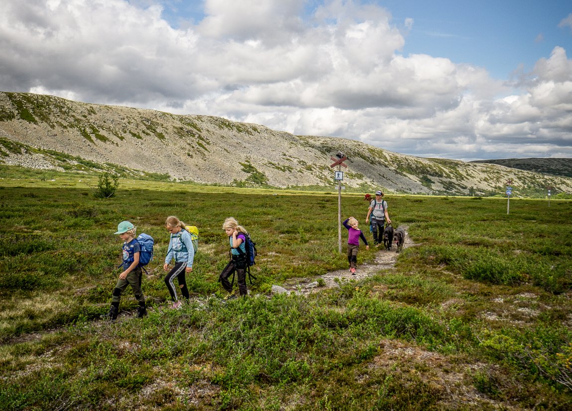 – Om du ska gå med barn skulle jag definitivt ta turen till Fettjeåfallet. Det är ett högt vattenfall, ett av Sveriges högsta och jättehäftigt. Det är lätt att gå dit, man följer en bäck 1-2 kilometer i snäll lutning innan du kommer till fallet och där kan du grilla korv i eldstaden. Sedan skulle jag också vilja tipsa om Äventyrsstigen för barn i Björnrike. Längs den får man klättra över stockar och gå över broar i en cool ravin, det är väldigt spännande. Ett annat förslag är att hälsa på Plupp! Då följer man en 800 meter lång slinga från Storhogna till Plupps kåta på fjället. Intill finns ett vindskydd och en eldstad och för vuxna bjuder turen också på fin fjällkänsla.