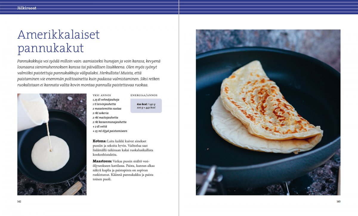 Vaellusruoan tulee olla kevyttä kantaa, mahtua pieneen tilaan ja säilyä rinkan pohjalla päiväkausia. Jokaisen aterian on annettava tarpeeksi energiaa toipuaksesi päivän rasituksista ja pystyäksesi jatkamaan taivalta. Herkullisilla aterioilla saadaan nostatettua vaikeuksien koettelemaa mielialaa.