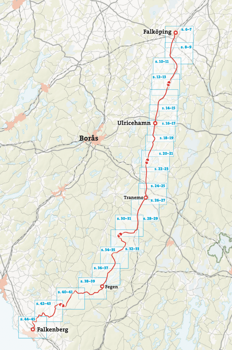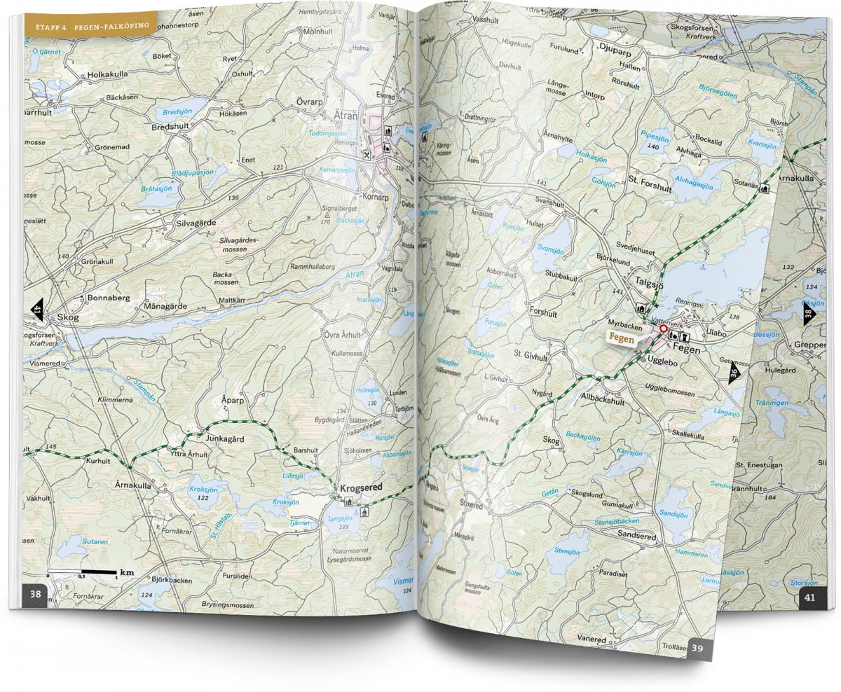Den här cykelatlasen täcker hela ledens sträckning med 20 special­utvecklade kartor i behändigt bokformat. Kartorna visar om leden går på asfalt eller grus, om det är cykelbana eller trafikerad väg och var det finns cykelservice, kaféer och boenden.