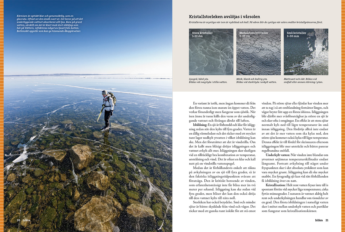 Islära – Egenskaper hos vatten, is och olika istyper, bärighet, tillväxt och smältning.