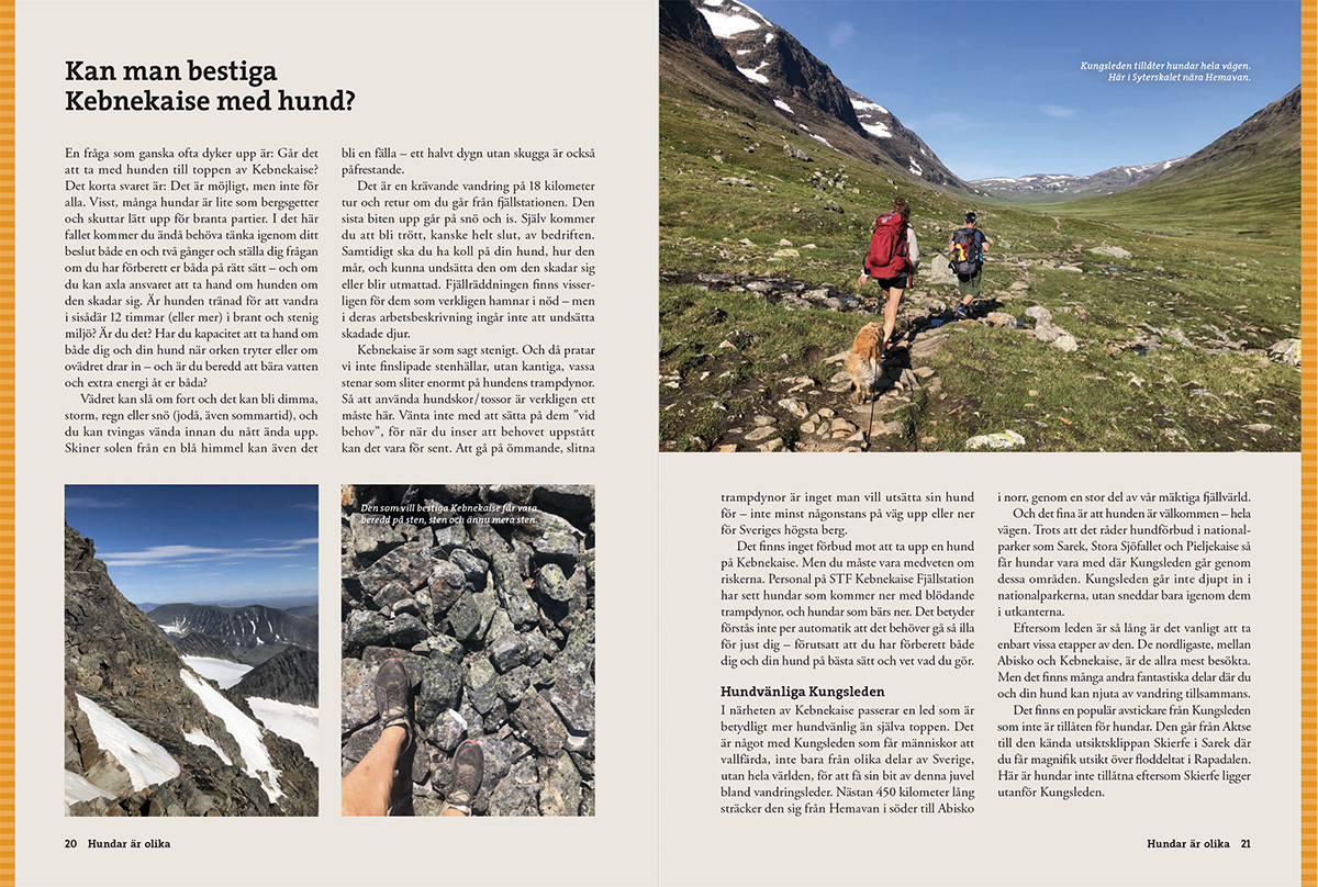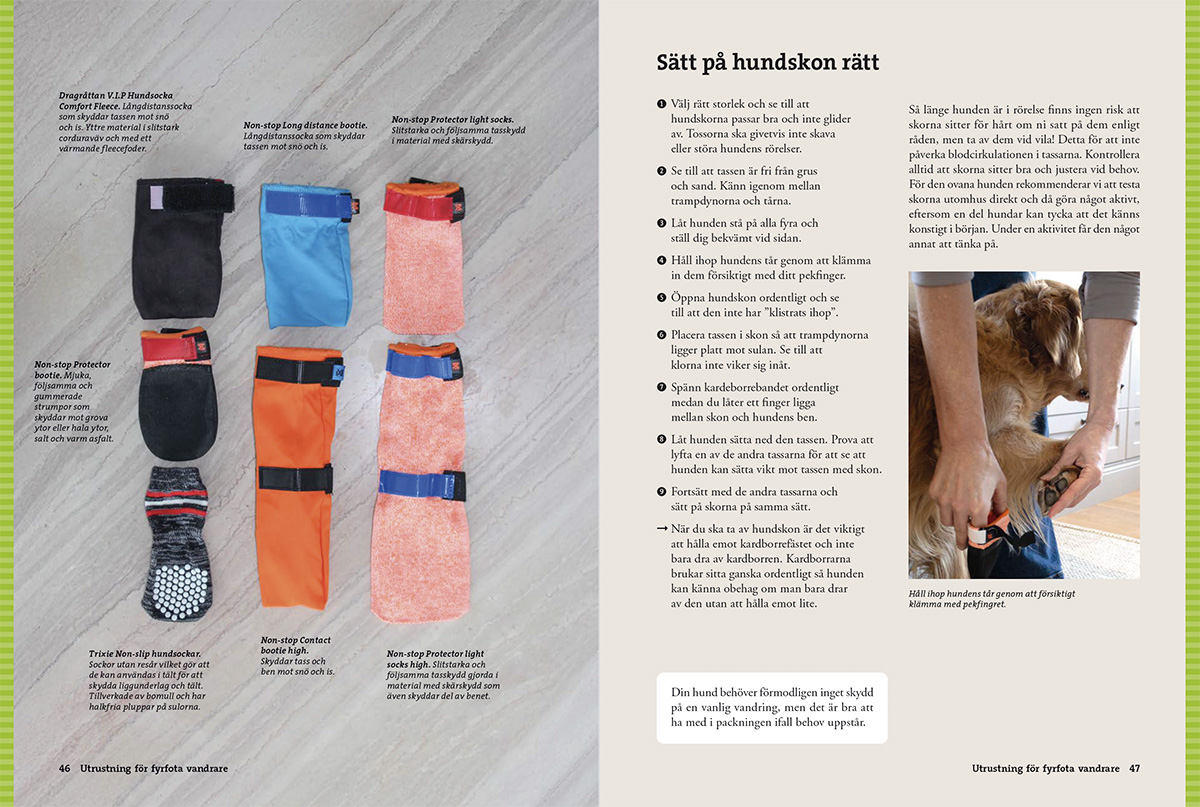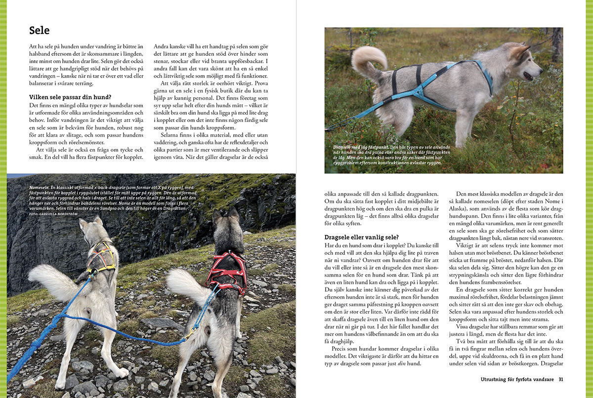 Vandra med hund är en omfattande handbok som guidar dig genom de vanligaste frågorna inför turen. Kan hunden också bära packning? Hur lär man den att komma till ro i tältet – eller i en stuga bland andra vandrare? Och hur förbereder man sig inför en längre vandring? Här får du veta vad som är viktigt att tänka på, från planering av hundens mat till hur ni kan minska risken för skador.