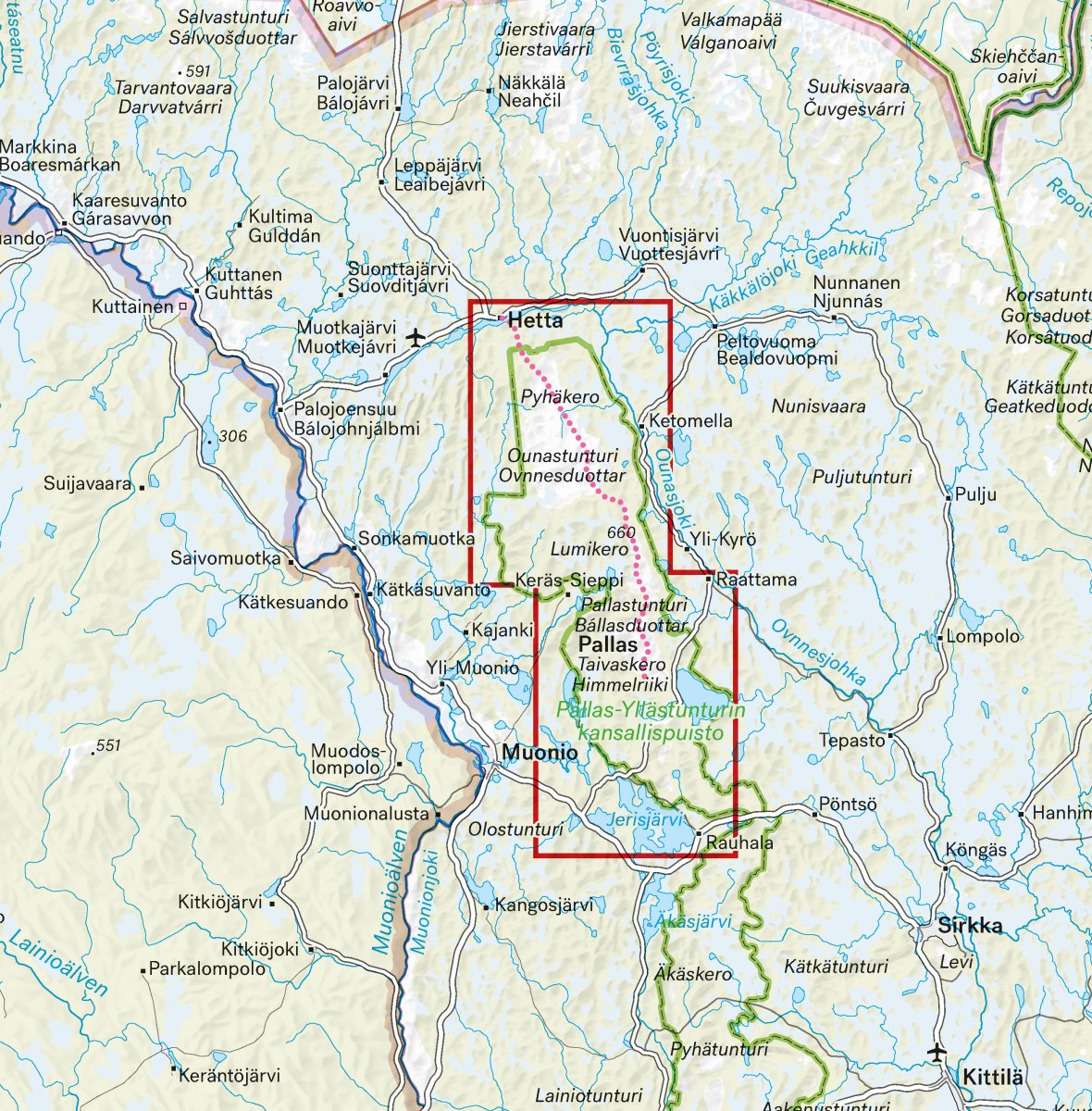 Den bästa kartan för dig som ska vandra norra delen av den populära leden genom Pallas–Yllästunturi nationalpark