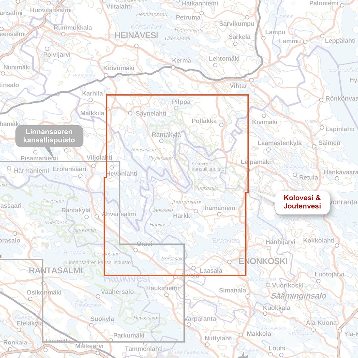 Koloveden kansallispuiston kalliorannat kaikuvat vain erämaan ääniä, sillä moottoriveneily saimaannorpan lisääntymisalueella on kielletty. Lähde melontaretkelle ja laske kanoottisi Käköveden tai Kirkkorannan vesillelaskupaikalta.