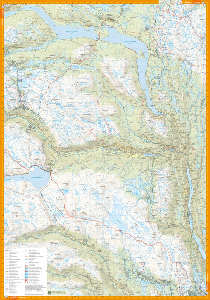 Kartan täcker alla de mest populära fjällområdena, markerade vandringsleder i området, DNT-stugor och privata övernattningsstugor. Den fungerar lika bra på vintern med markerade vinterleder och preparerade skidbackar.